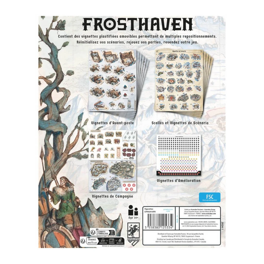 Ce set pour Frosthaven contient des vignettes plastifiées amovibles permettant de multiples repositionnements.