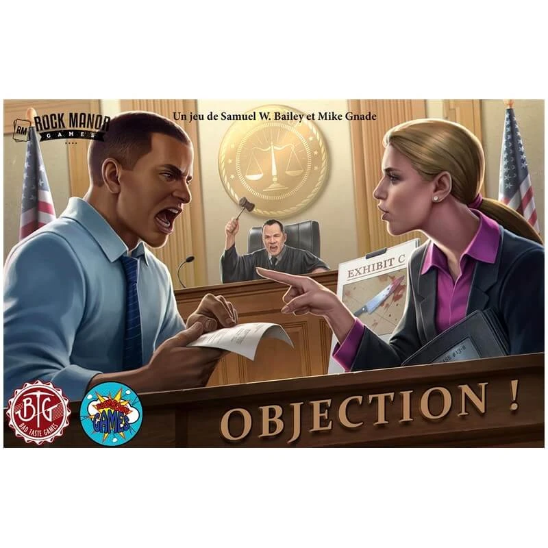 Objection ! est un jeu de cartes asymĂ©trique pour deux joueurs qui vous propose de participer Ă un procès dans le système judiciaire amĂ©ricain : un joueur incarnera la noble Accusation et l’autre l’inĂ©branlable DĂ©fense.