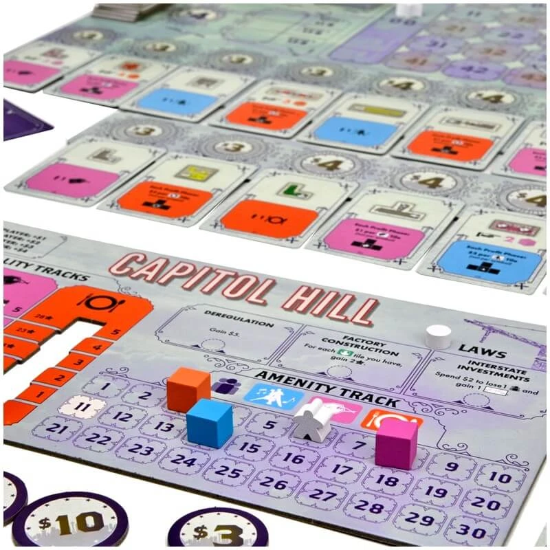 Le dĂ©clenchement d’Ă©vĂ©nements Ă l’Ă©chelle de la ville peut changer le cours du jeu, offrant des points, de l’argent et des extensions aux joueurs qui y sont prĂŞts. Vous pouvez mĂŞme promulguer des lois pour vous donner l’avantage ! A la fin de la partie, celui dont le quartier aura gagnĂ© le plus de points sera le vainqueur !