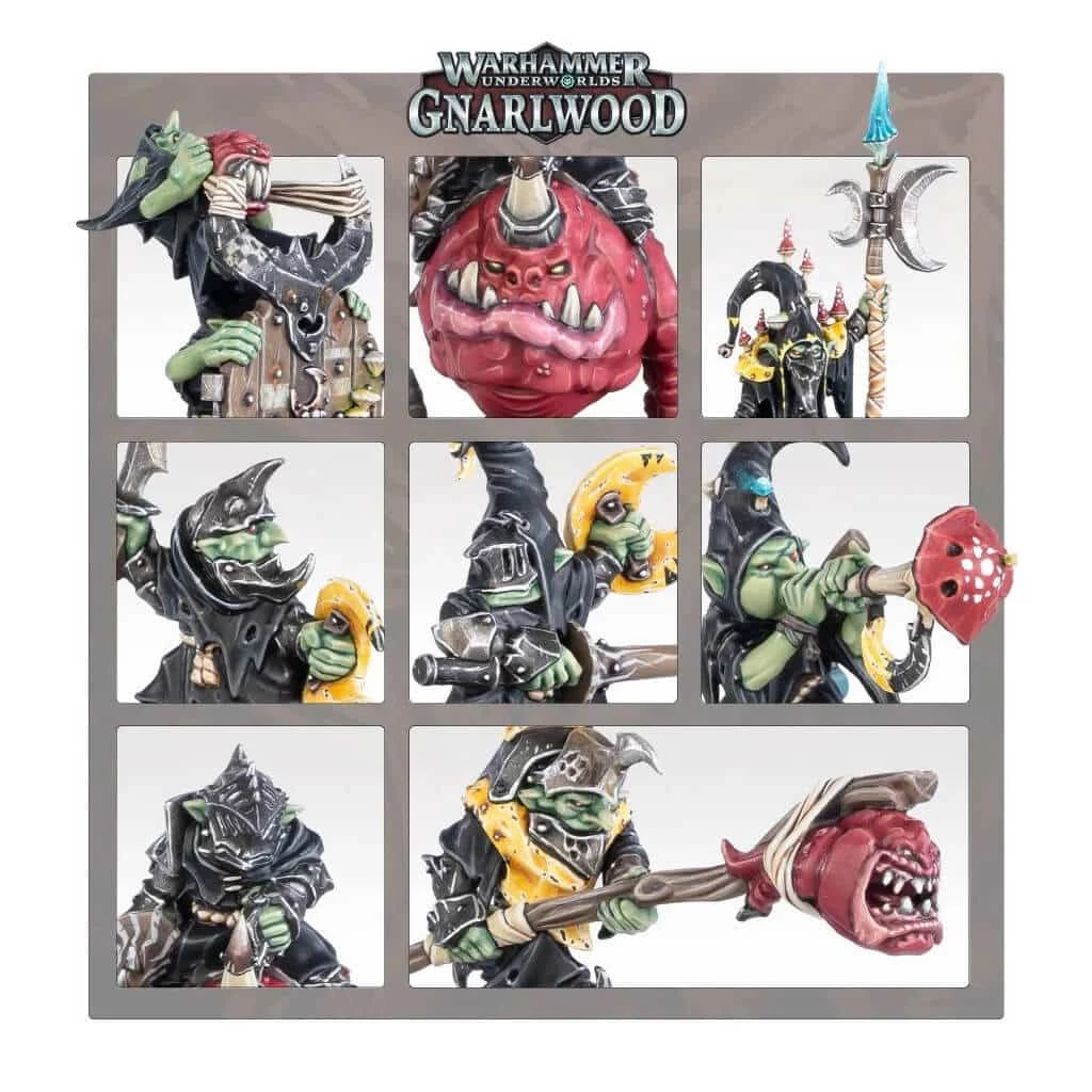 Warhammer Underworlds – Gnarlwood – Courlouf de Grinkrak – Grinkrak et sa Courlouf sont une bande inhabituelle, c’est le moins que l’on puisse dire. Avec pas moins de sept figurines, ils forment l’une des plus grosses bandes du jeu